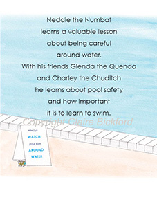 Meet Neddie the Numbat who with his friends Glenda the Quenda and Charley the Chuditch, learns a valuable lesson about being careful around water, pool safety and how important it is to learn to swim.